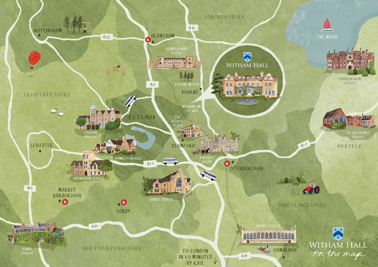 Witham Hall is a happy and thriving boarding and day school for boys and girls aged 4 to 13 years. Situated eight miles from Stamford on the Lincolnshire, Rutland, Cambridgeshire and Northamptonshire borders, we are based in a beautiful rural village with proximity to Peterborough's fast train links to London.